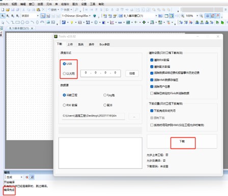 1.觸摸屏接通電源,軟件內(nèi)點(diǎn)擊“下載”,等待編譯完成