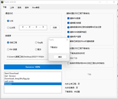 3、選擇工程下載方式,USB 或者網(wǎng)絡(luò),確認(rèn)下載,如果提示“通訊失敗”,請(qǐng)檢查下載線連接是否 正常(USB 線或者網(wǎng)線),如果提示“啟動(dòng)下位機(jī)失敗”,可以先斷電,讓 HMI 重啟,再次嘗試。(百度一下速捷工控)